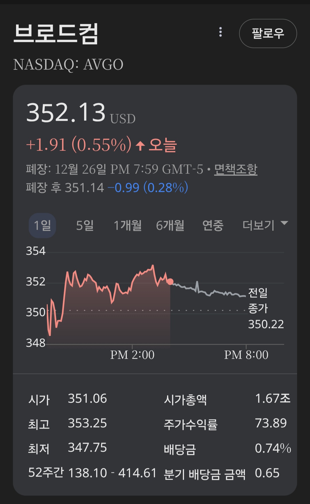 특히 브로드컴은 반도체뿐 아니라 네트워크, 통신, 소프트웨어 영역까지 사업을 확장하며 안정적인 현금흐름을 창출하고 있습니다. 이러한 구조는 경기 변동 속에서도 배당을 꾸준히 인상할 수 있는 기반이 됩니다.브로드컴 주가 현황과 전망 AI 반도체 시장의 강자
