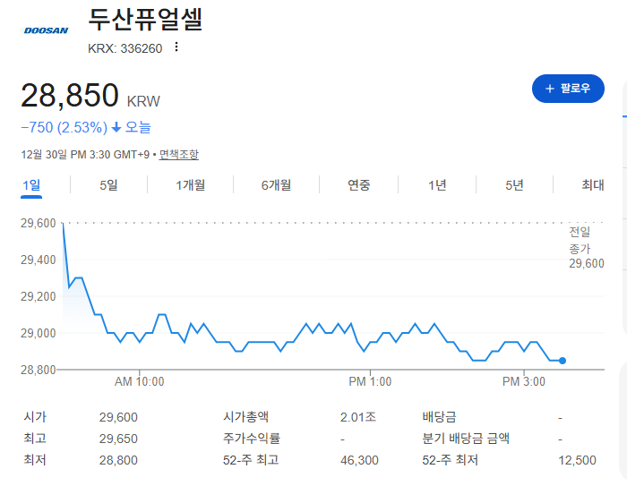 두산퓨얼셀 주가 전망 배당금 없는 이유 수소 관련주재테크 2025. 12. 30. 17:44300x250