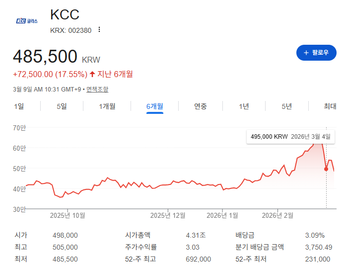 특히 2026년에는 KCC가 사상 최대 실적에 도전할 것이라는 분석도 나오고 있어 투자자들의 관심이 더욱 높아지고 있습니다. 이번 글에서는 KCC주가 전망 2026을 중심으로 실적 전망, 주가 상승 요인, 그리고 투자 시 고려해야 할 리스크까지 차근차근 정리해 보겠습니다.